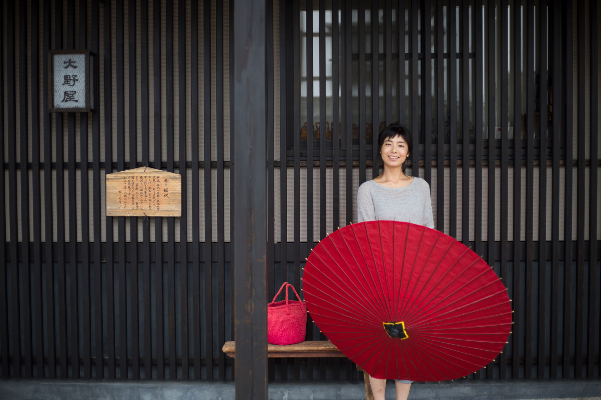 特に赤や黄の傘の色が顔映りを明るくしてくれて